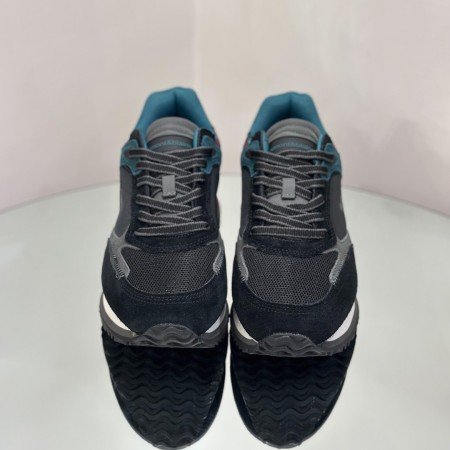 Composition : Cuir et tissu, inserts en daim, bout rond, modèle à lacets, inserts color block, logo contrasté sur les côtés.