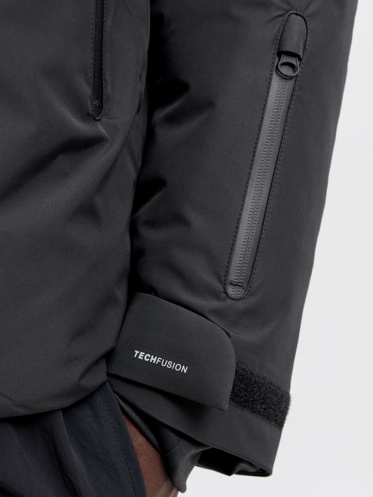 Cette veste chaude et isolante est parfaite pour les mois d'hiver. Il s’agit d’un produit TECHFUSION fabriqué dans un tissu de haute qualité, avec une membrane performante. Cela garantira une performance élevée tant par le vent qu’avec la pluie et vous gardera confortable et au sec pour la saison. Classement étanche de 10 000 mm. - Type d'article : Veste - Fonctionnalité : Traité pour rester au sec en cas de pluie légère, Conçu pour bloquer le vent - Col : Capuche avec cordon de serrage - Manches : Manches longues - Poignets : Poignets ou bas velcro - Fermeture : Fermeture éclair - Poches : Poches avant avec fermeture à glissière, Poche sur la manche avec fermeture à glissière - Longueur/Taille : Court - Rembourrage : Rembourré de polyester recyclé pour une légèreté, chaleur et confort - Mode de vie : Extérieur